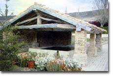 En cuanto a la iglesia, tiene torre medieval de hacia 1300, pero el resto fue ampliado en el XVI. La puerta va cobijada bajo un pórtico renacentista sobre arco rebajado, con bóveda de crucería sobre columnas. Tiene una nave con dos capillas a modo de crucero y otro frente a la puerta, donde se sitúa la pila bautismal medieval, decorada con arquillos de medio punto. Tiene coro elevado bajo el primer tramo, el que está bajo la torre y que por tanto es medieval. Se cubre el templo con bellas bóvedas entrelladas. Llama la atención el retablo, el mejor del Valle, romanista del XVII y obra del ensamblador Juan de la Era y el escultor Gaspar Ramos; tiene influencia del clasicismo, destacando la Anunciación, el San Antonio y el Calvario. Las figuras son heroicas y fuertes, como las de Miguel Angel. Para terminar, destacamos la lápida del suelo, solo interpretable a medias, procedente de la casa Erlarena. Desde Elorz iniciamos ya el regreso rumbo a Noáin por la N-240, pero en el Km 11 nos desviamos a la derecha para entrar en nuestra última etapa. Zulueta Hallamos en primer lugar una fuente antiquísima, pues se cita ya en un documento a finales del siglo XVIII. Se accede al pueblo a través de un carretil flanqueado de árboles; podemos admirar el antiguo lavadero, símbolo de modos de vida no tan lejanos, y que hoy configura un rincón tranquilo y pintoresco. Delante de la iglesia hay una casa de un solo nivel, con ventanas góticas y puerta de medio punto con escudo en la clave; debe datar de fines de la Edad Media. Detrás de la parroquia hay un gran caserón de tres pisos con escudo barroco, y al sur un pueblo, las ruinas del antiguo palacio del señor de Zulueta, formado por cuatro tramos de dos niveles y con patio central al que se accede por una puerta de medio punto, hoy destruida. Hasta hace poco se conservaba una de las torres del antiguo palacio. En cuanto a la parroquia, es medieval del XIII en su origen, de lo que queda la parte baja de los muros y el primer tramo de la nave, así como la torre. El resto es XVI y XVII. En el primer tramo de la nave hay bóveda de cañón apuntado, y se abre por una ventana romántica; los tramos segundo y tercero llevan bóvedas de terceletes, y sobre el crucero hay una bóveda estrellada. El retablo, del XVIII, es romanista como los de la mayoría del Valle, y está dedicado al patrono San Esteban. Se observan aquí también los rostros barbados y cabelleras leonada que tanto gustaban a Miguel Angel. En una de las capillas hay un escudo y un sepulcro, y una pula bautismal romántica. Desde Zulueta, que tiene lugares de esparcimiento como la fuente, la Venta y el frontón ante las antiguas escuelas, retomamos el camino de Noáin, punto de partida y final de esta ruta. |